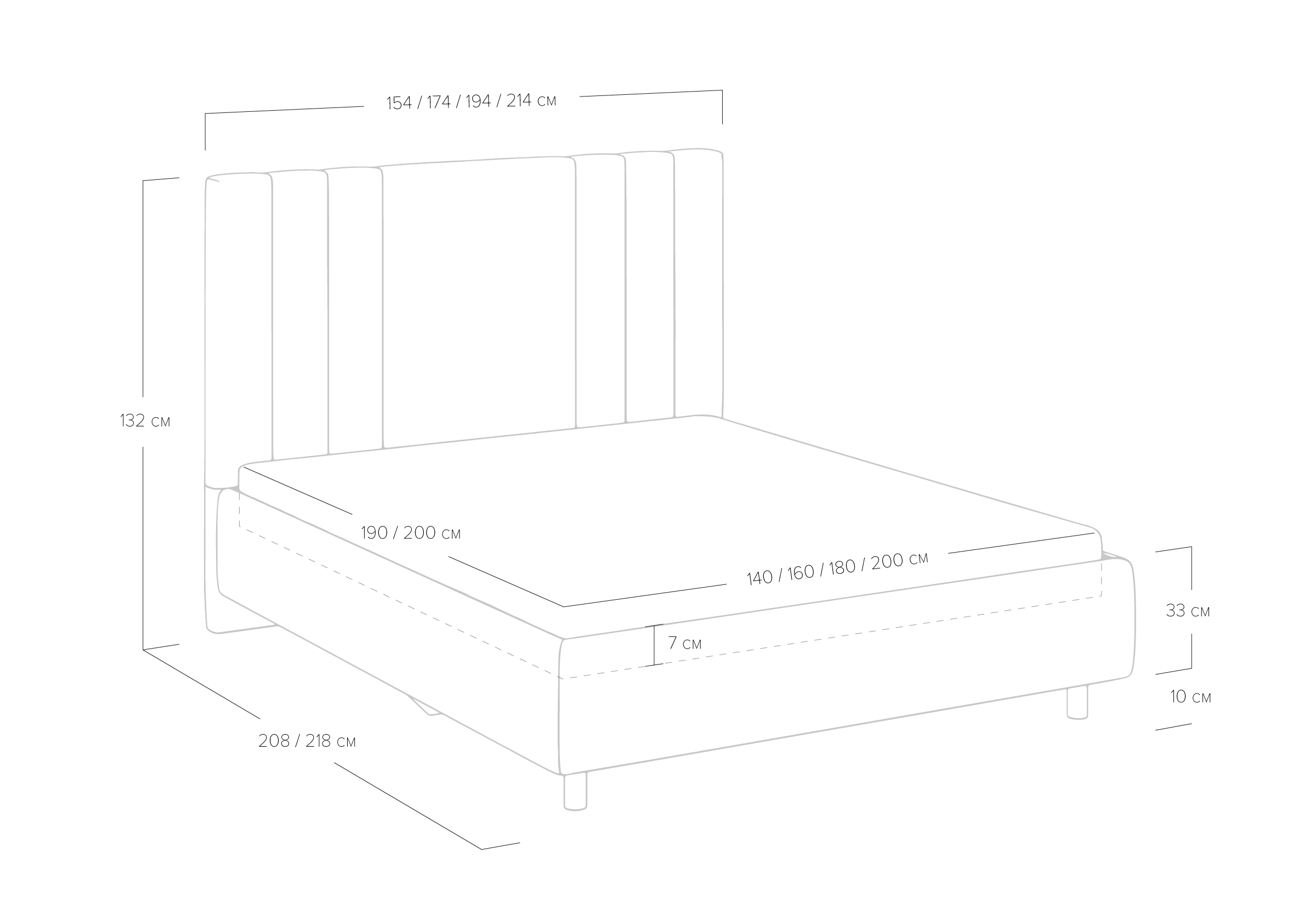 Идеальное сочетание элегантного дизайна и практичных решений. Кровать созданная для тех, кто ценит как стиль, так и удобство в повседневной жизни. Высокое изголовье придаёт сдержанную, но выразительную форму. Благодаря минимализму линий, модель гармонично сочетается с интерьерами в разных стилях. Увеличенный просвет от пола делает уход простым и быстрым, в том числе роботом–пылесосом. При необходимости кровать может быть укомплектована разборным или неразборным металлическим основанием с ламелями, подъемным механизмом с бельевым ящиком и трансформируемым основанием Aquarius.