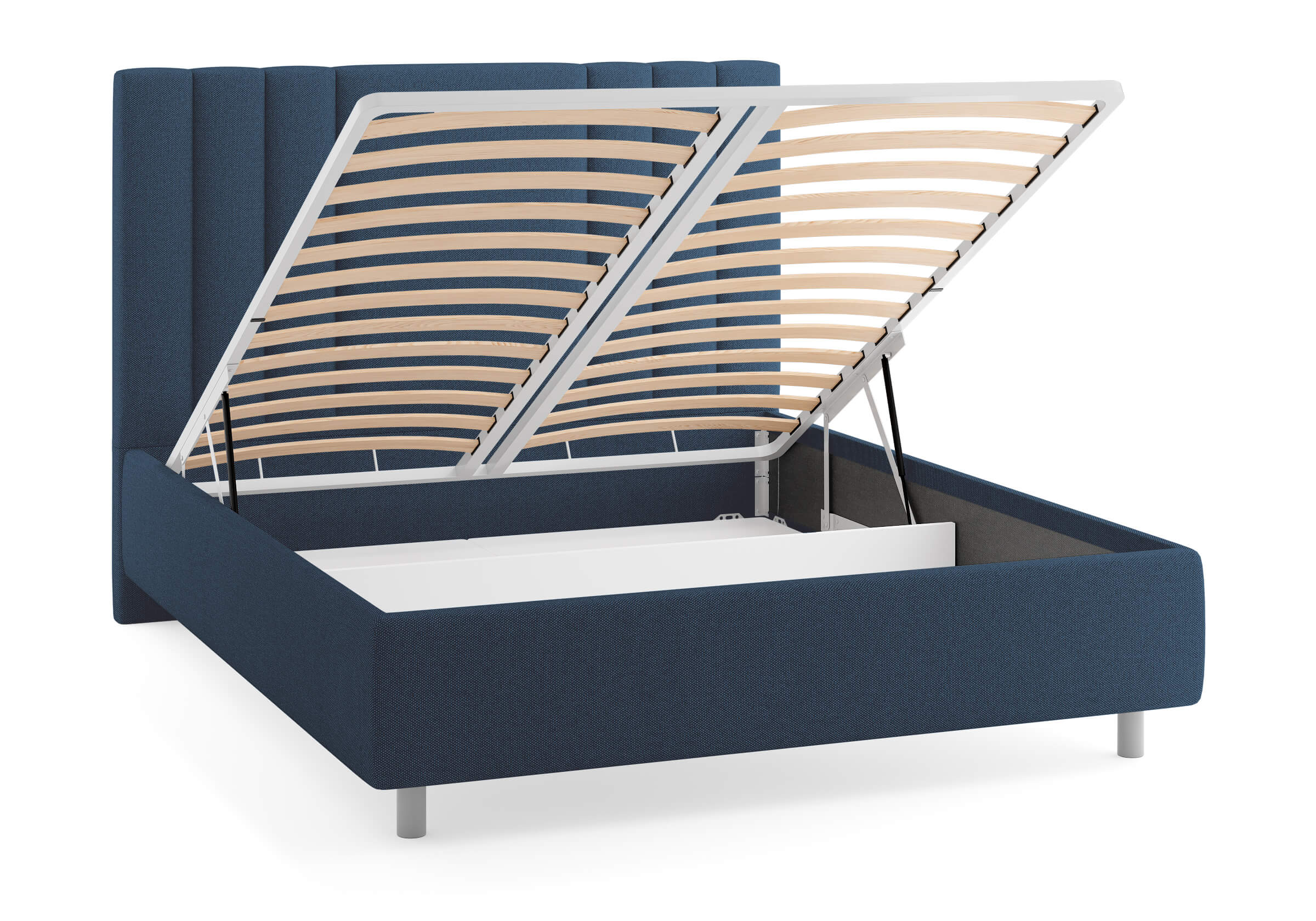 Возможна установка подъемного механизма со вместительным бельевым ящиком. Дно бельевого ящика легко сдвигается для обеспечения уборки под кроватью.